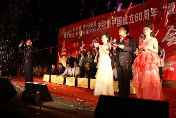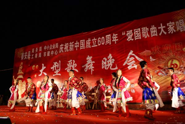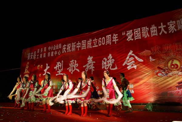 秦安縣慶祝新中國成立60周年“愛國歌曲大家唱”大型歌舞晚會,于9月12日晚在秦安縣興國廣場舉行。晚會由秦安縣商務(wù)局主辦,秦安縣工商局、秦安縣中小局、秦安縣市建中心共同協(xié)辦。